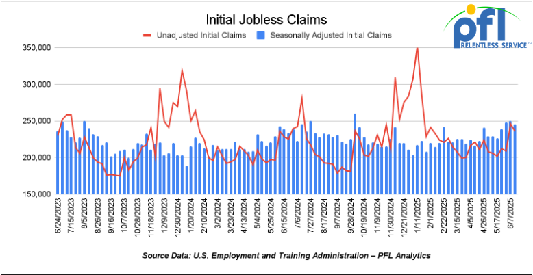 - Initial jobless claims seasonally adjusted for the week ending June 14 came in at 245,000, down 5,000 people week over week week-over-week.