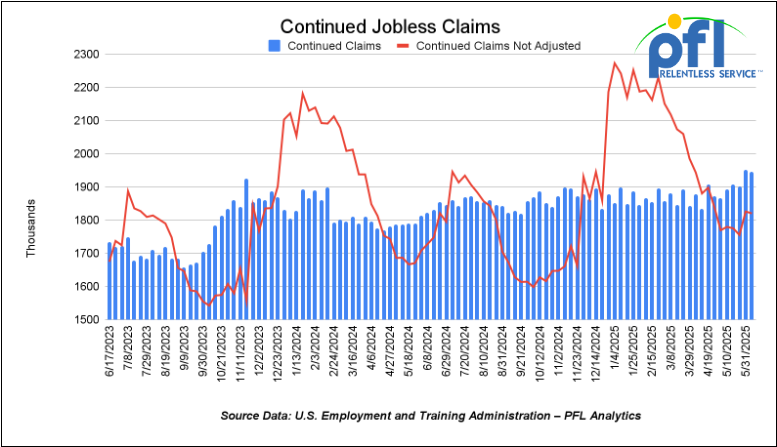- Continuing jobless claims came in at 1.945 million people, versus the adjusted number of 1.951 million people from the week prior, down 6,000 people week-over-week.